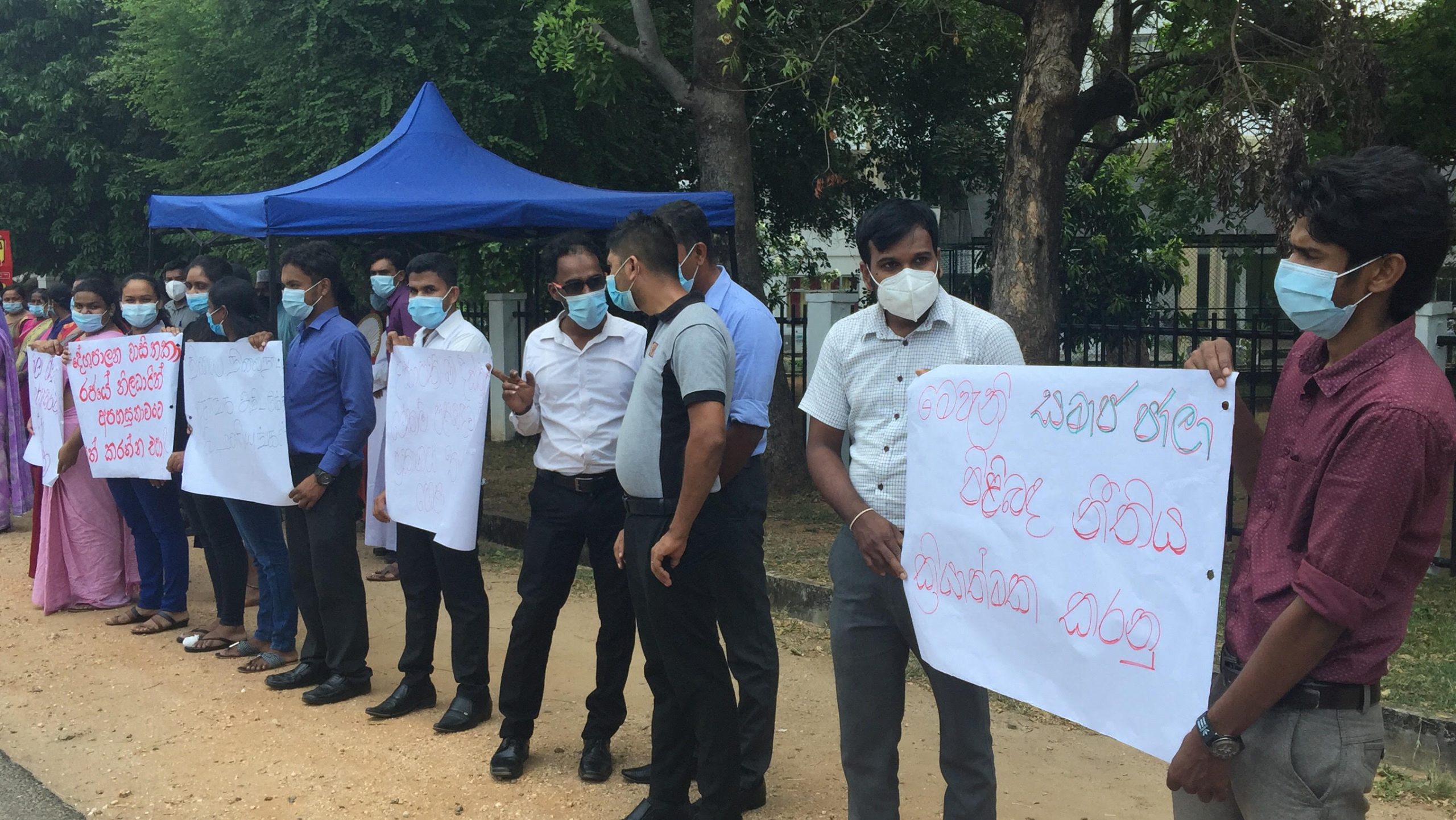 இன்று (புதன்கிழமை) மதிய உணவு வேளையில் காரியாலயத்திற்கு முன்பாக ஒன்று கூடிய அரச ஊழியர்கள் அமைதியான முறையில் சமூக இடைவெளியைப் பேணி பதாதைகளை ஏந்தியவாறு தமது எதிர்ப்பை வெளிப்படுத்தினர்.