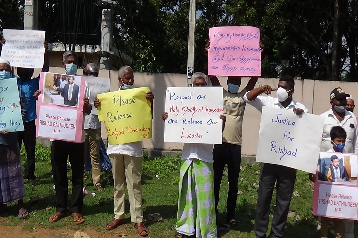 முன்னாள் அமைச்சர் றிசாட் பதியூதீனை விடுதலை செய்யுமாறு கோரி வவுனியாவில் ஆர்ப்பாட்டம் ஒன்று முன்னெடுக்கப்பட்டது.