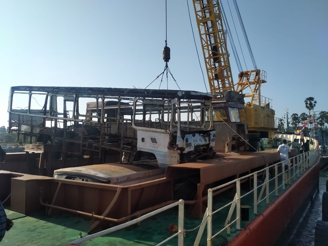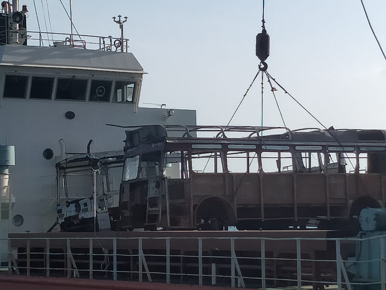 இந்நிலையில், முதலாவது தொகுதி பேரூந்துகளை ஏற்றிய கடற்படைக் கப்பல், அடையாளப்படுத்தப்பட்ட கடல் பகுதியை நோக்கிய தனது பயணத்தினை ஆரம்பித்துள்ளது.